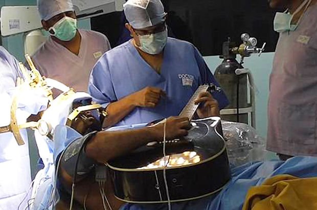 Sıradışı teknik, Hindistan'ın Bangalore şehrindeki Bhagawan Mahaveer Jain Hastanesi'nde kullanıldı. İngiliz gazete Daily Mail'de yer alan haberde beyin ameliyatı geçirirken bir hastanın gitar çalması inanılmaz bir an olarak açıklandı.